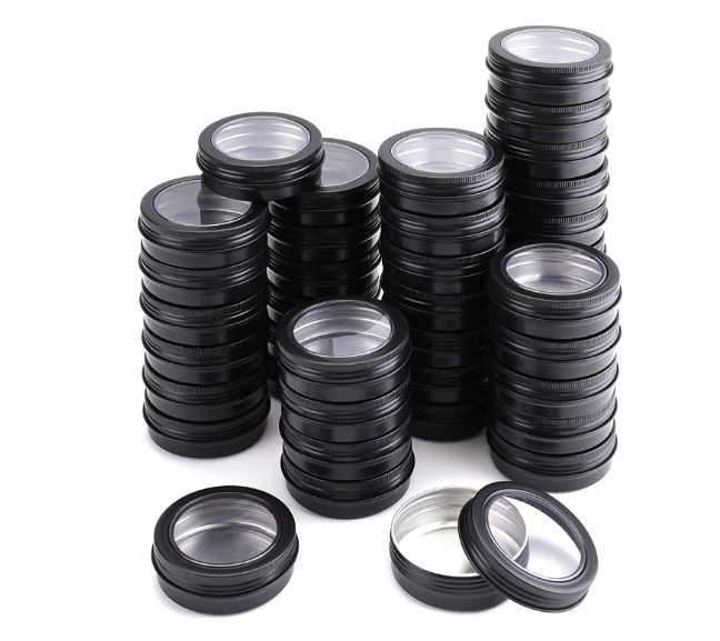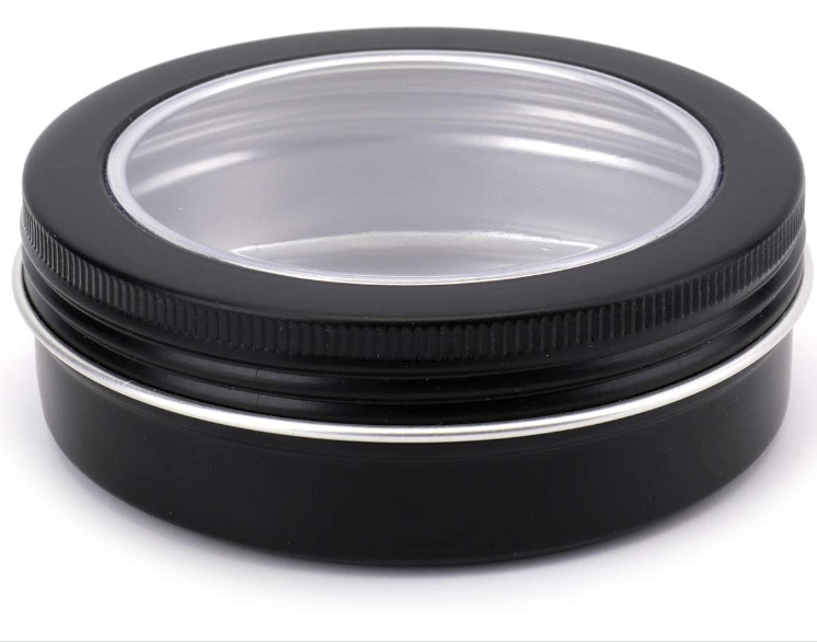 Negro redondo de 2 oz 4 oz tornillo lata tarro con ventana transparenteNombre del producto