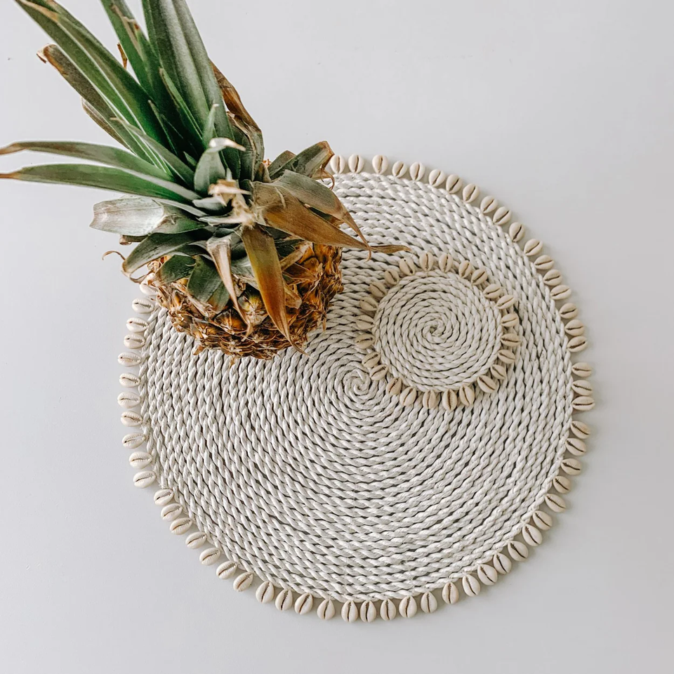 Mantel Individual redondo de concha de algas marinas, productos ecológicos hechos en Vietnam, Mantel Individual, decoración de mesa, venta al por mayor