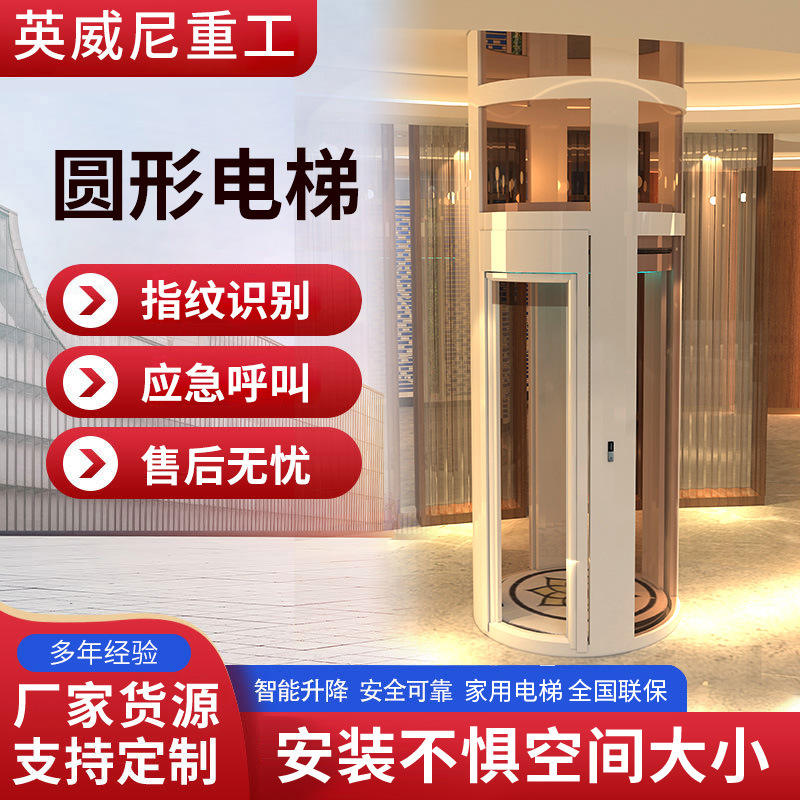 Ascensor Residencial Redondo Semicircular, Ascensor para Viviendas, Ascensor de Tracción, Pequeño, Sin Foso, con Puerta Automática y Vista Panorámica