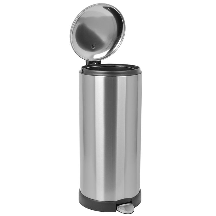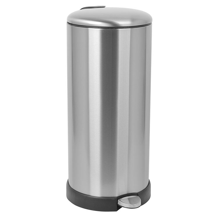 Bote de basura de acero inoxidable para cocina con cierre suave de 30 litros y forma redonda con pedal