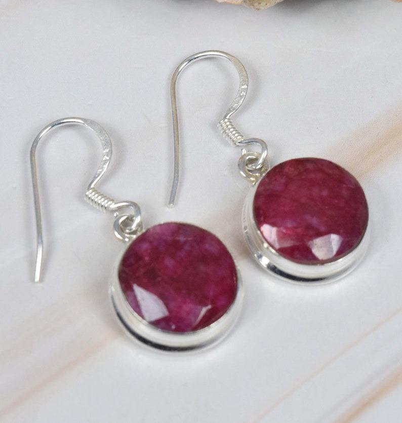 Regalo de plata 925 de forma redonda para mujer, gran oferta, rubí rojo, Plata de Ley 925, piedras preciosas, gancho facetado, pendiente, joyería hecha a mano