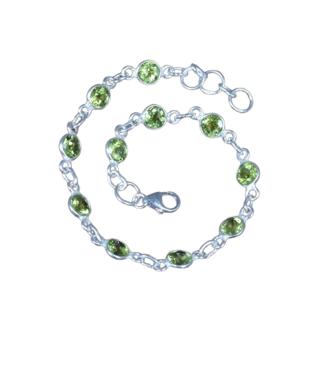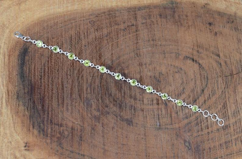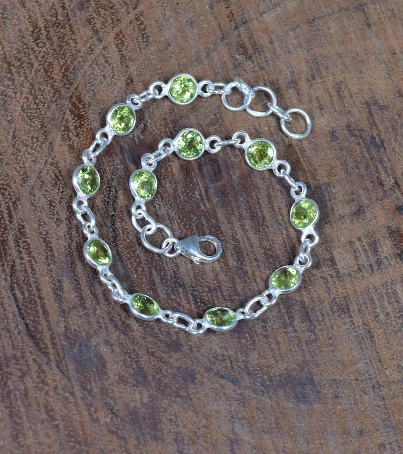 Forma redonda 925 plata esterlina peridoto piedra preciosa hecha a mano pulsera de plata fina joyería 925 joyería de plata esterlina estampada