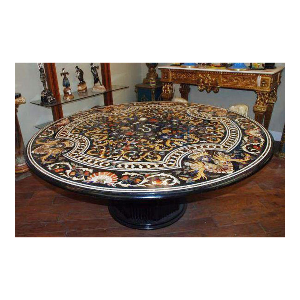 Mesa de mármol con incrustaciones de forma redonda, decoración hecha a mano de la mejor calidad, para el hogar y uso de otros artículos