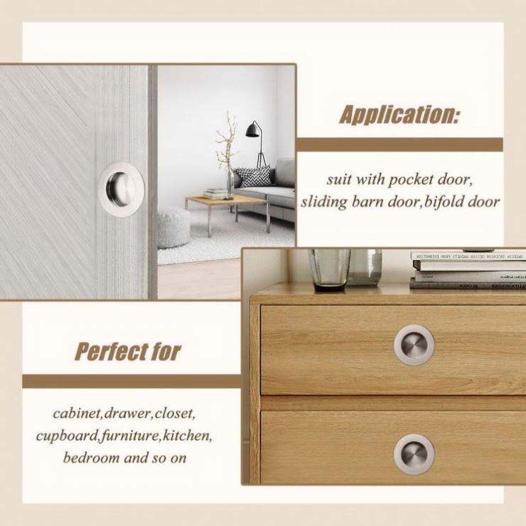 Manija de Puerta Redonda Empotrada de Acero Inoxidable, Diseño Contemporáneo, Fácil Instalación, Herraje para Muebles