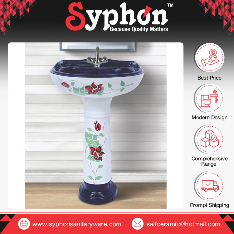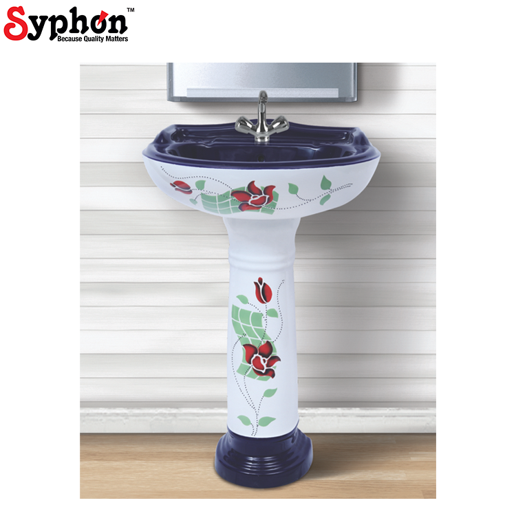 Pedestal de lavabo de mano de moda pulido de cerámica para uso doméstico y comercial certificado ISO de diseño floral de forma redonda