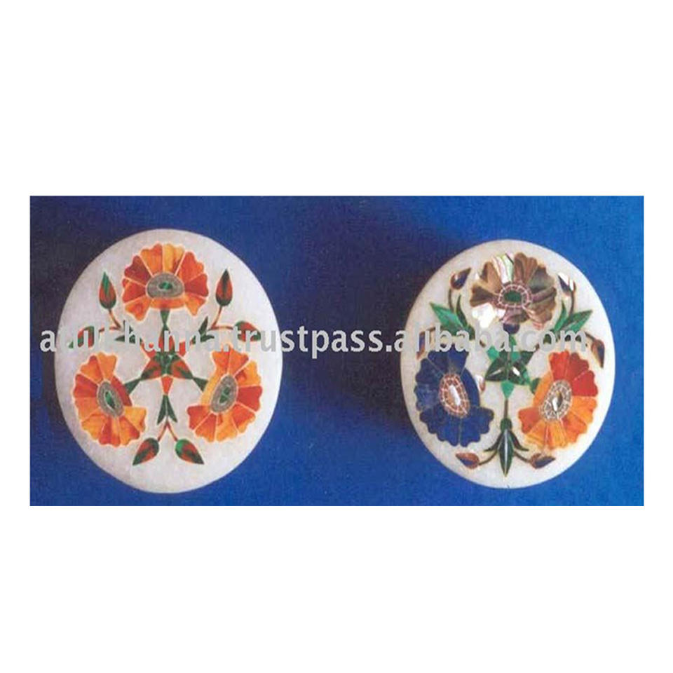 Caja de joyería con incrustaciones de mármol blanco pulido, hecha a mano, forma redonda, superficie lisa y brillante para almacenamiento de joyas