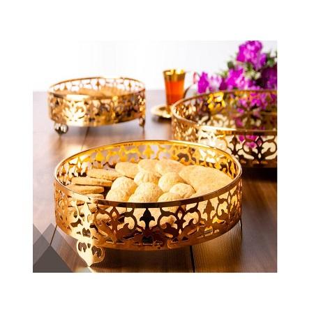 Bandeja de dátiles dulces de metal de forma redonda con bandeja de frutas dulces de color dorado de calidad superior de Home Arts