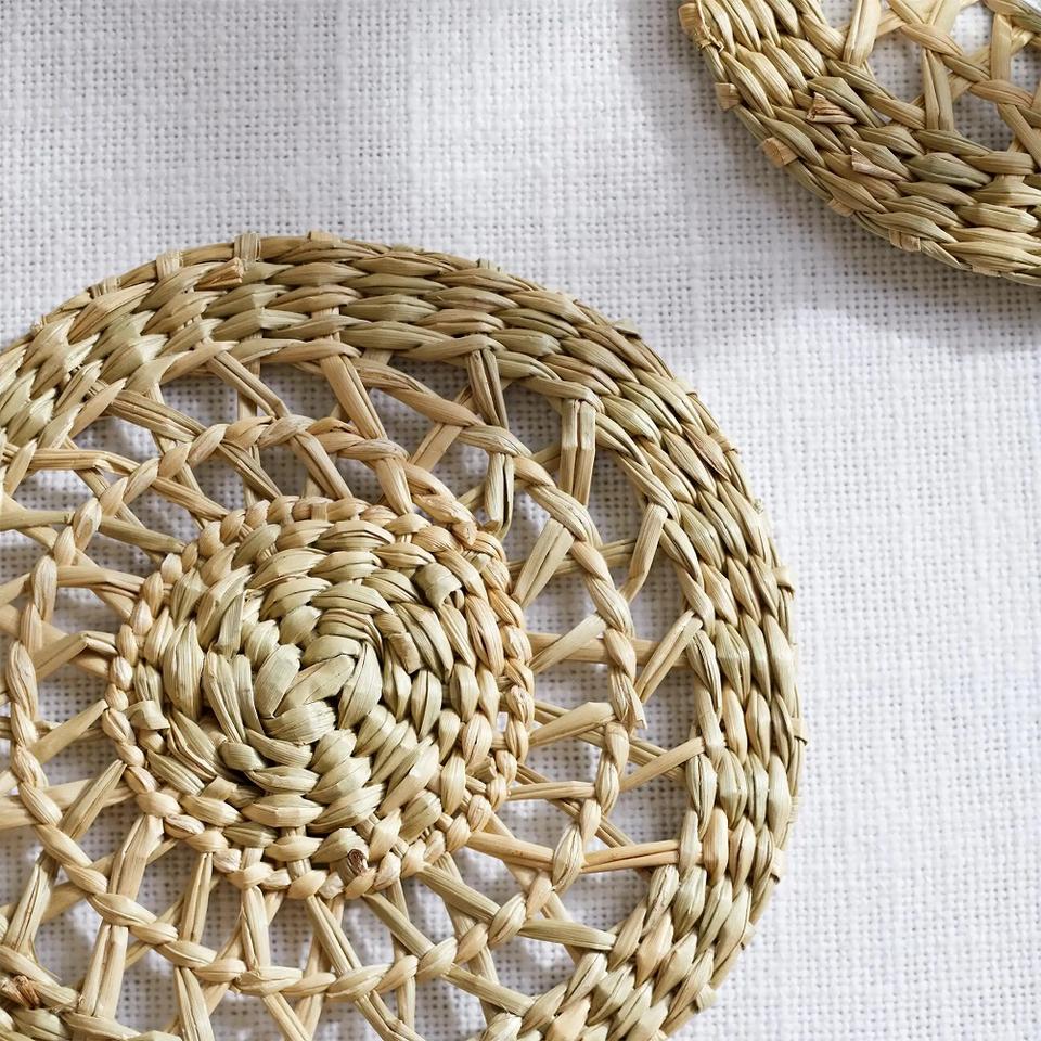 Salvamanteles Redondo, Accesorio de Decoración para el Hogar, Tejido a Mano con Ratán, Posavasos para Mesa de Comedor, Artesanía DHT