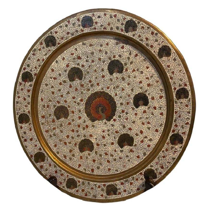 Platos de Servir Redondos de Latón Puro de Alta Calidad, Platos Redondos de Metal para Restaurante y Hotel con Diseño de Pavo Real para Uso en la Cocina