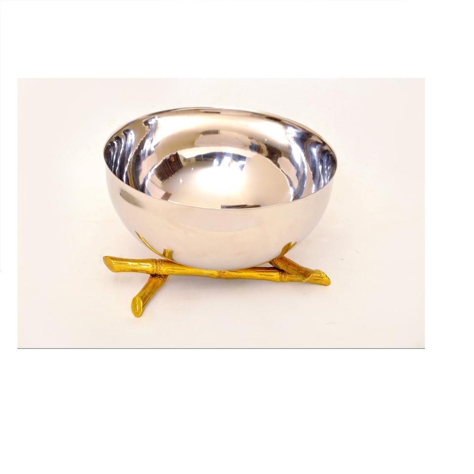 Tazón Redondo de Acero Inoxidable con Base Dorada para Catering de Bodas, Tazón para Servir Sopa, Mesa de Comedor