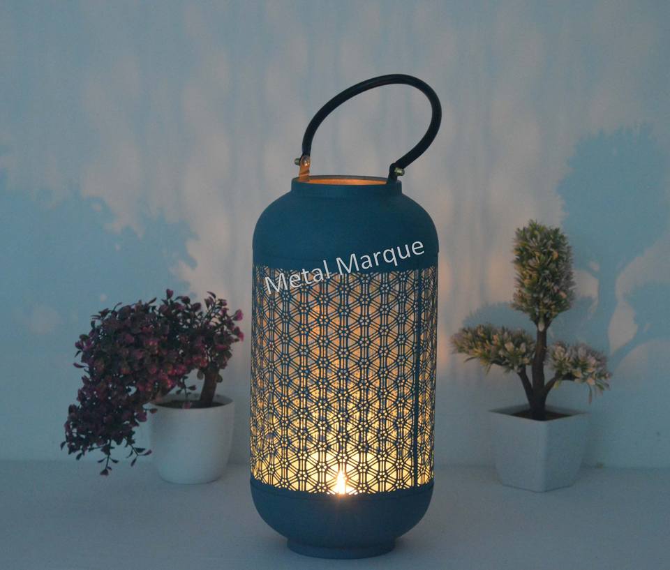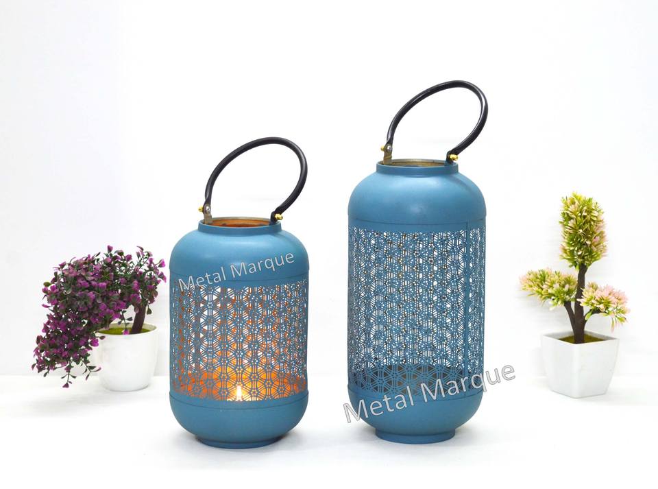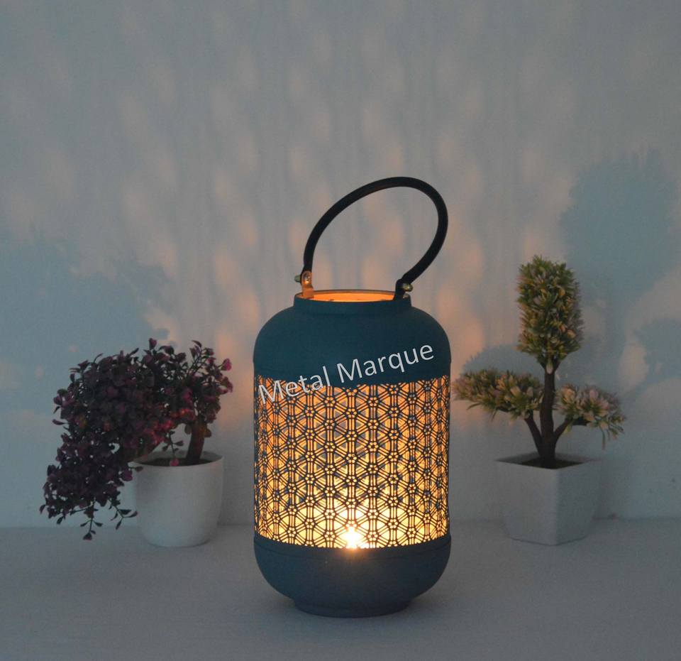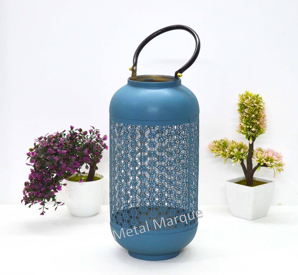 Vantage Premium forma redonda color turquesa diseño láser hogar decorativo linterna nuevo estilo linternas aspecto clásico vela linterna