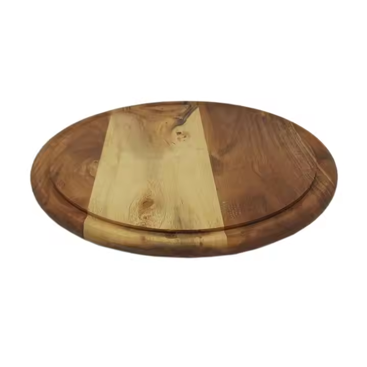 Plato de madera de forma redonda, plato de vajilla elegante de Color Natural para servir comida en la mesa del restaurante, caja fuerte de Crescent Crafts