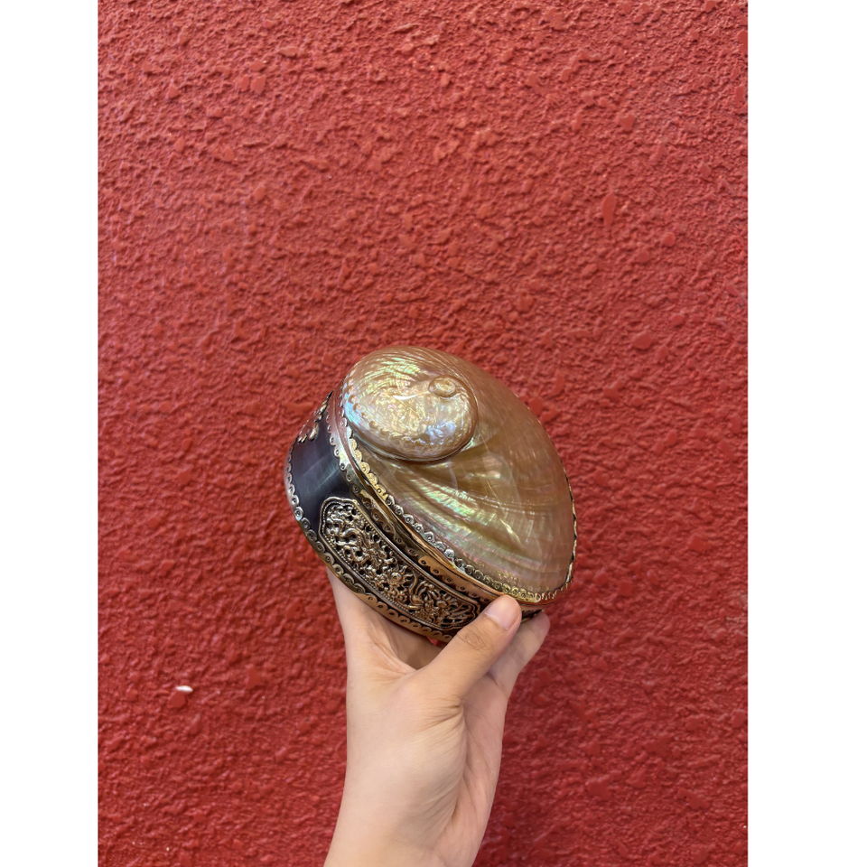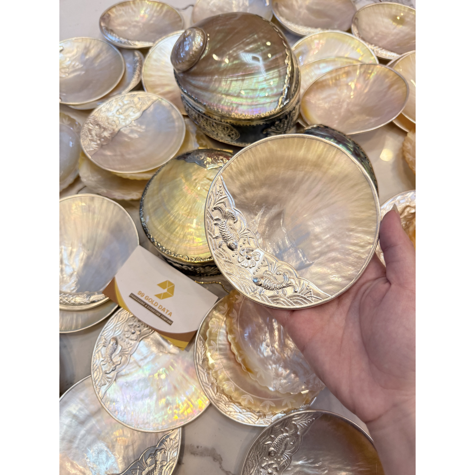 Plato Redondo de Concha con Motivo Grabado para Soporte de Anillos, Exhibición de Joyas, Inserto para Caja de Regalo y Acento Decorativo de Vietnam