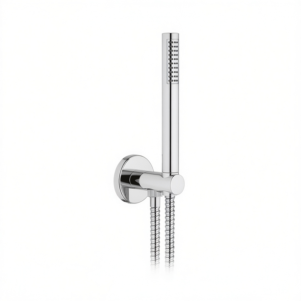 Juego de ducha redondo con conexión de agua flexible y ducha de mano cromada 24 cm de altura 9 cm de ancho 23 cm