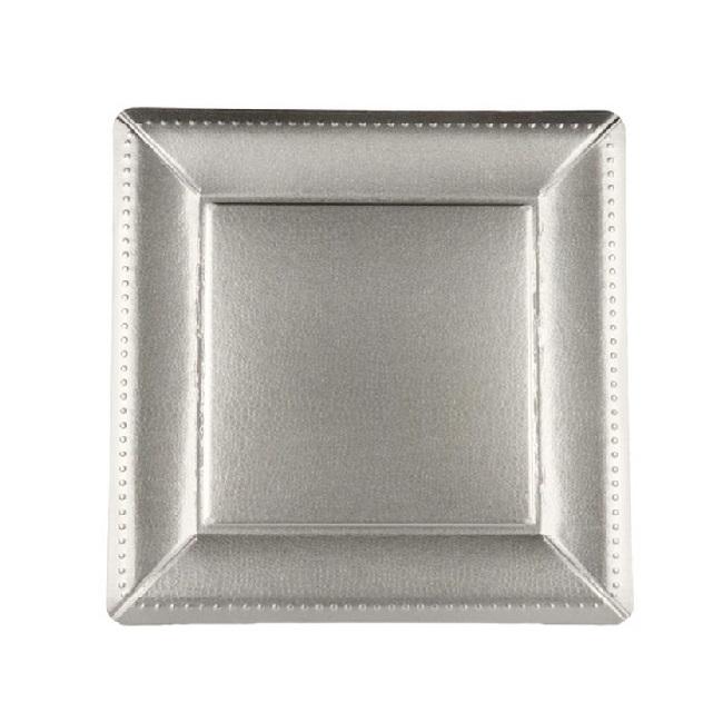Placa de cargador con borde de cuentas plateadas redondas, vajilla decorativa elegante para boda, fiesta, evento, banquete y decoración de comedor para el hogar