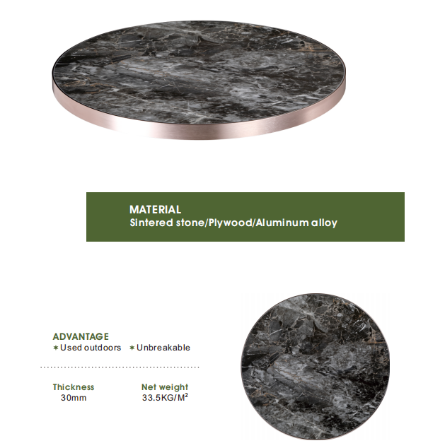 Piedra sinterizada + Contrachapado + Borde de aleación de aluminioMaterial