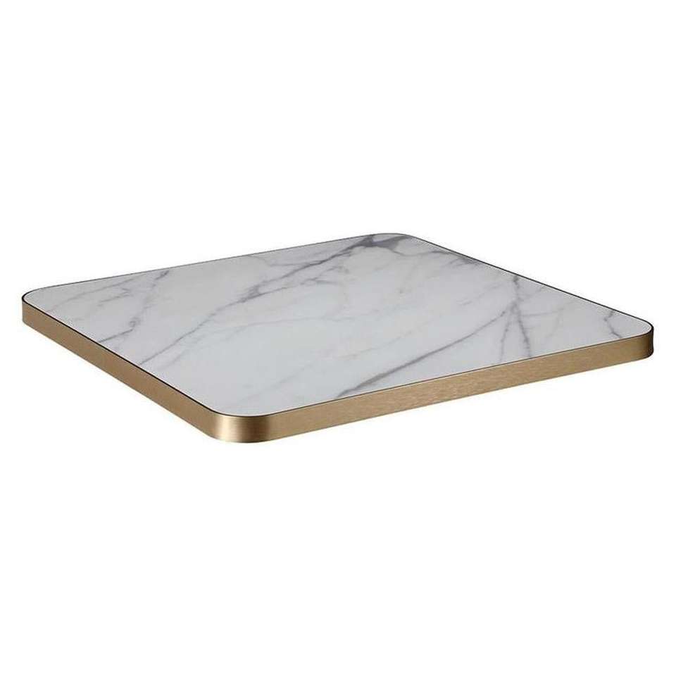 Tablero de Mesa Redondo de Piedra Sinterizada con Borde de Aluminio en Oro Rosa | Tablero de Mesa Comercial con Aspecto de Mármol de Lujo al por Mayor