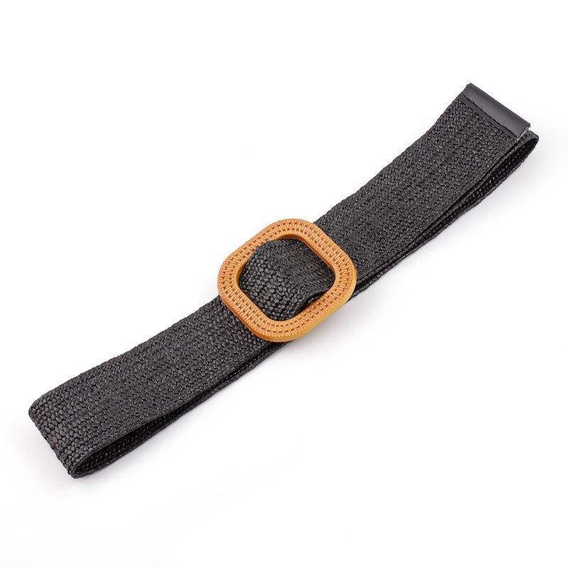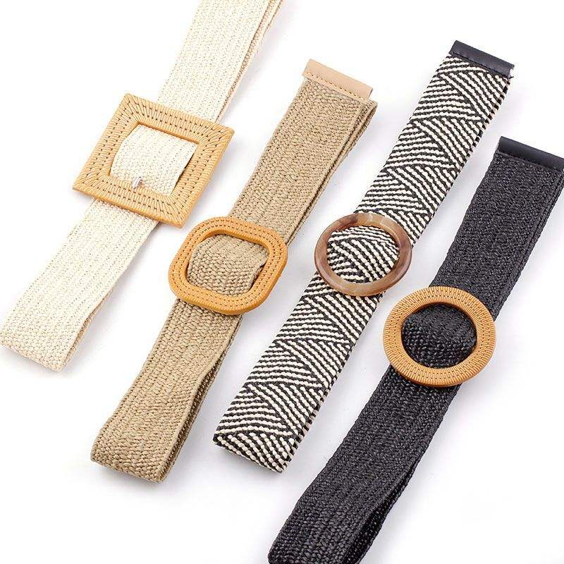 Cinturón de Rafia para Mujer, Hebilla Cuadrada Redonda, Cuerda de Cera PP, Tejido Vintage