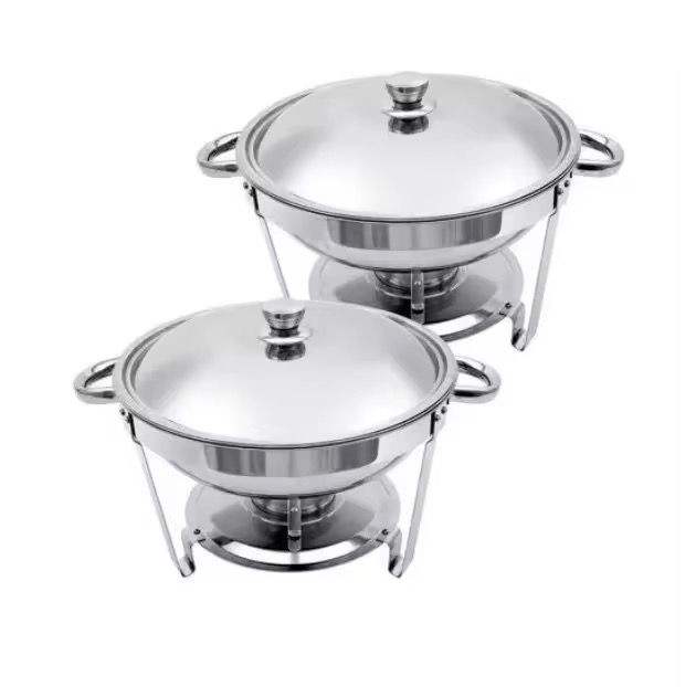 Juego de Recipientes para Calentar Comida con Base y Tapa de Acero Inoxidable, Calentador de Alimentos Tipo Buffet para Hoteles y Servicios de Catering