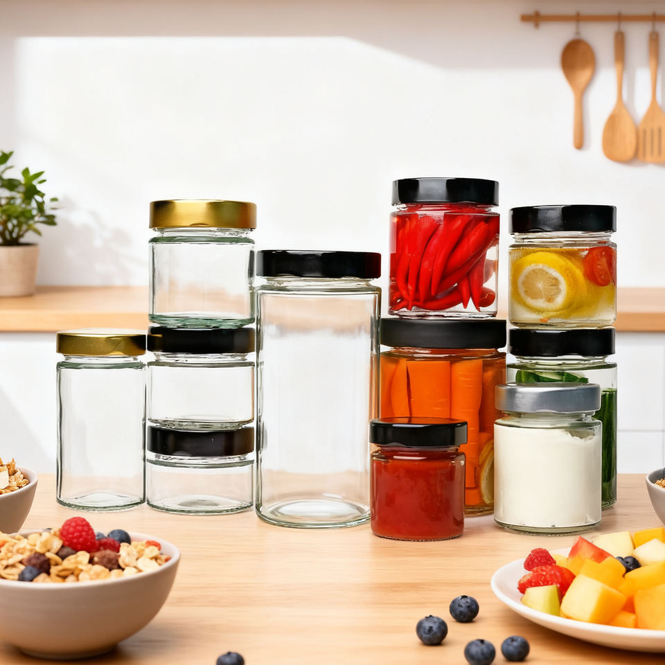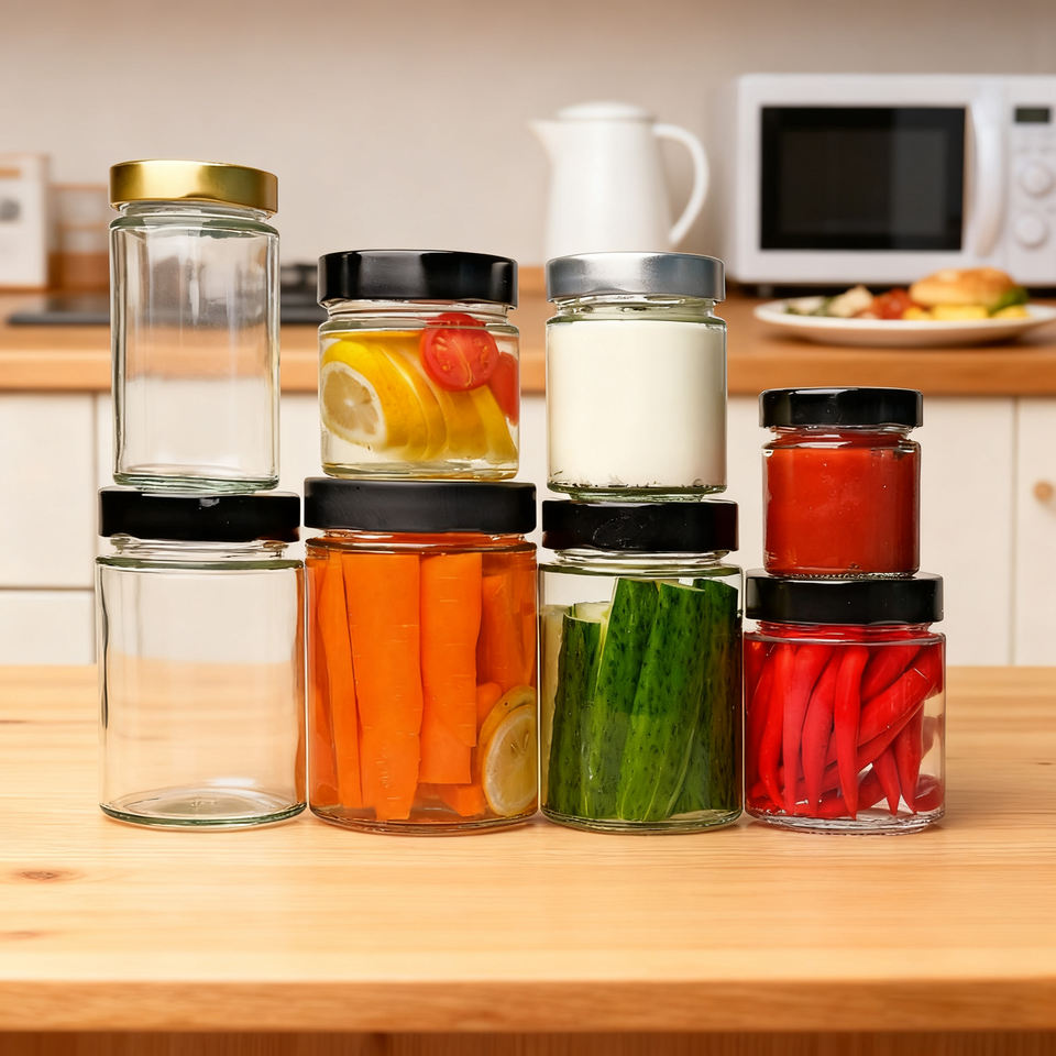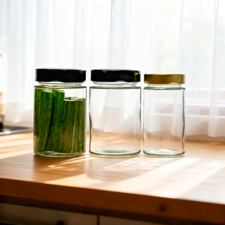 Tarro de Vidrio Redondo y Recto con Tapa de Metal Profundo para Salsa, Mermelada de Miel, Pepinillo para Brotes de Bambú, Aceitunas, Brotes de Soja, Pepinos