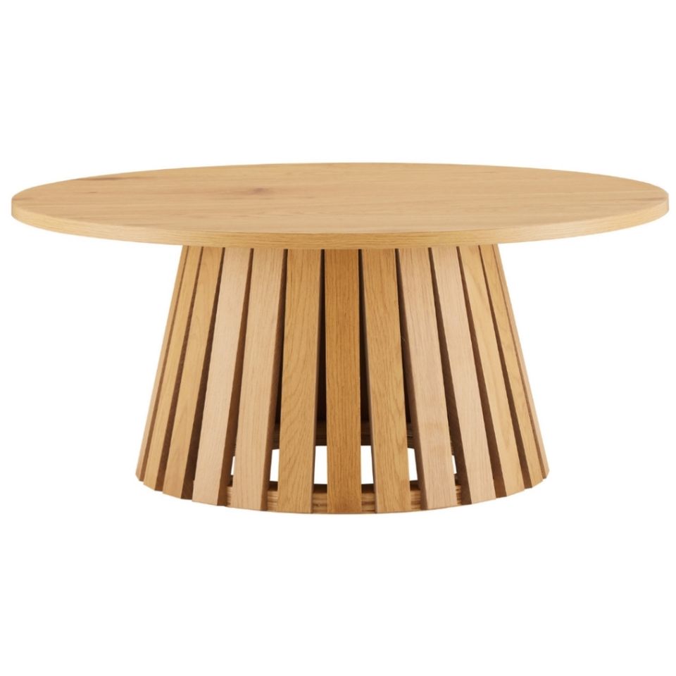 Mesa de Centro Redonda de Teca Contemporánea con Base de Listones Modernos, Muebles de Lujo para Sala de Estar para Casas de Campo y Resorts