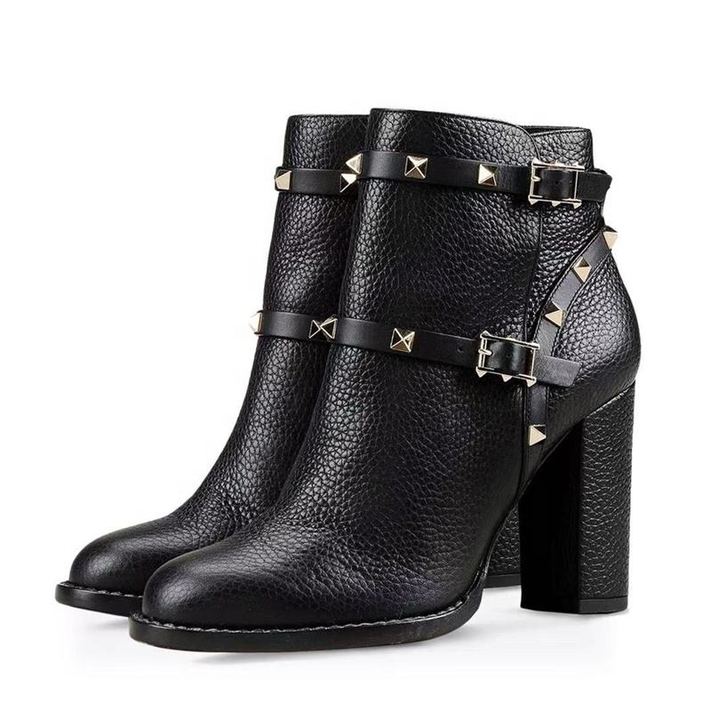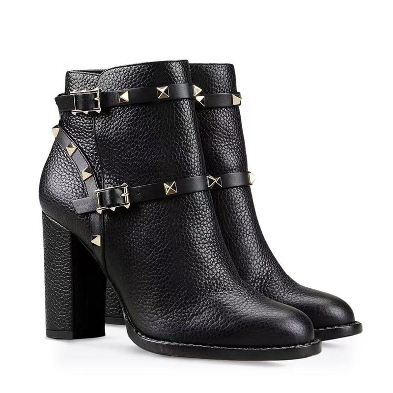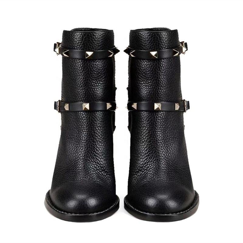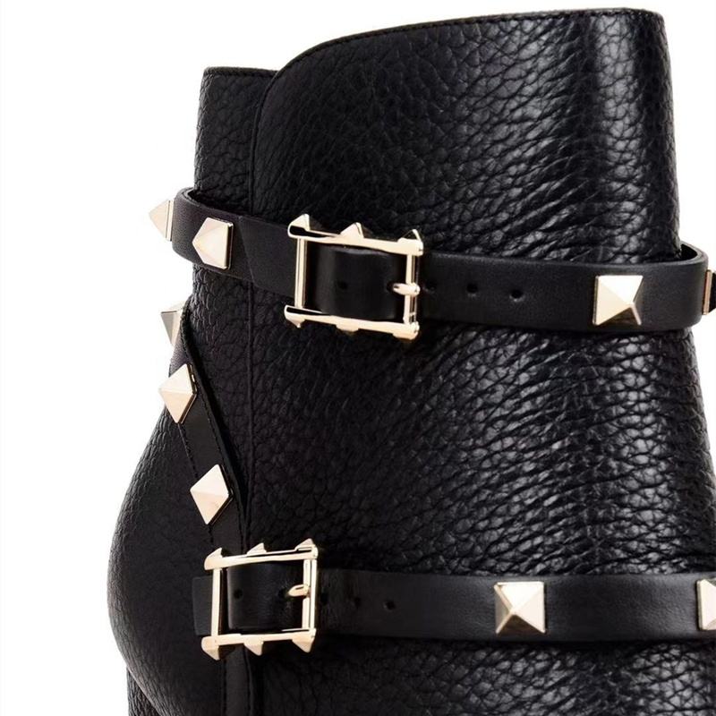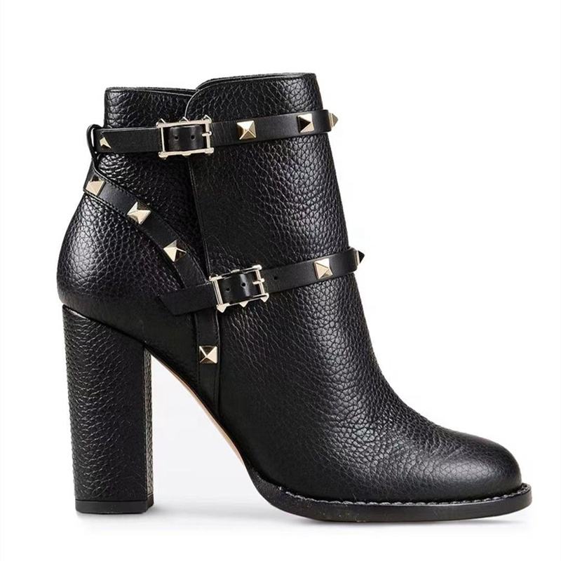 Botines de Moda para Mujer con Punta Redonda, Decoración de Tachuelas Negras, Correa Corta con Hebilla y Remaches, Nueva Llegada, Talla Grande 46