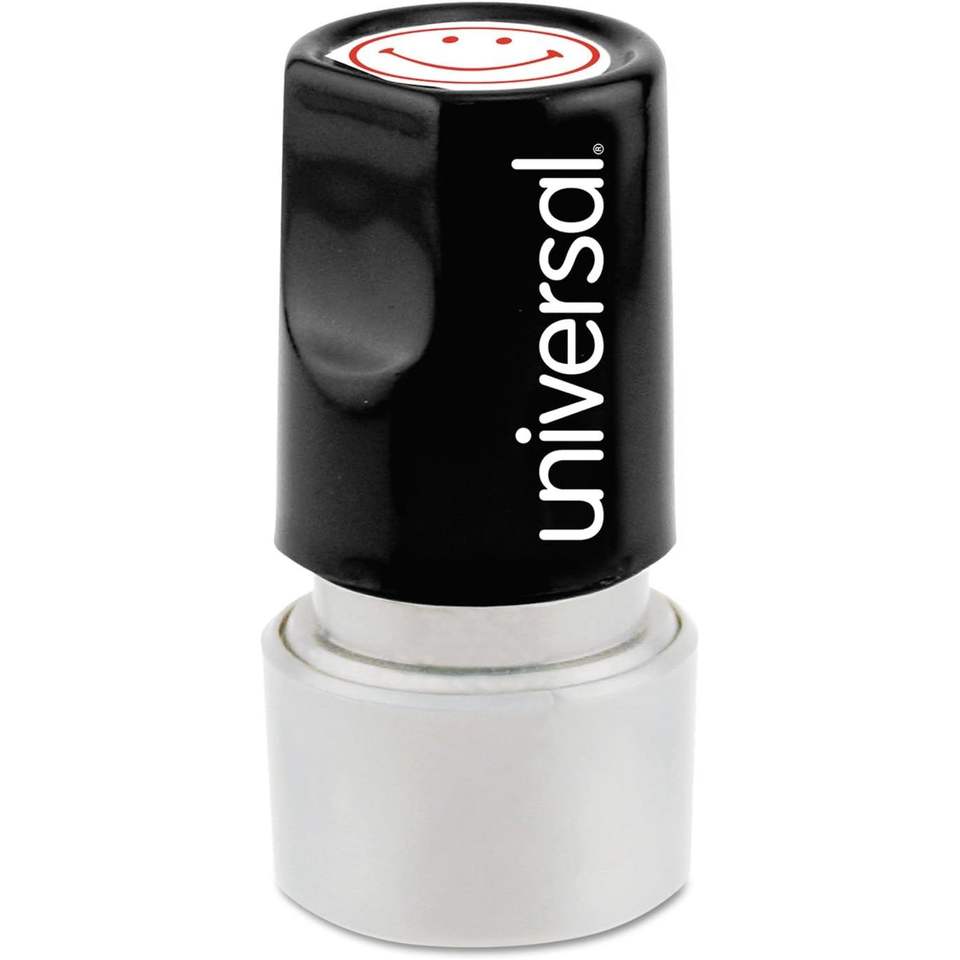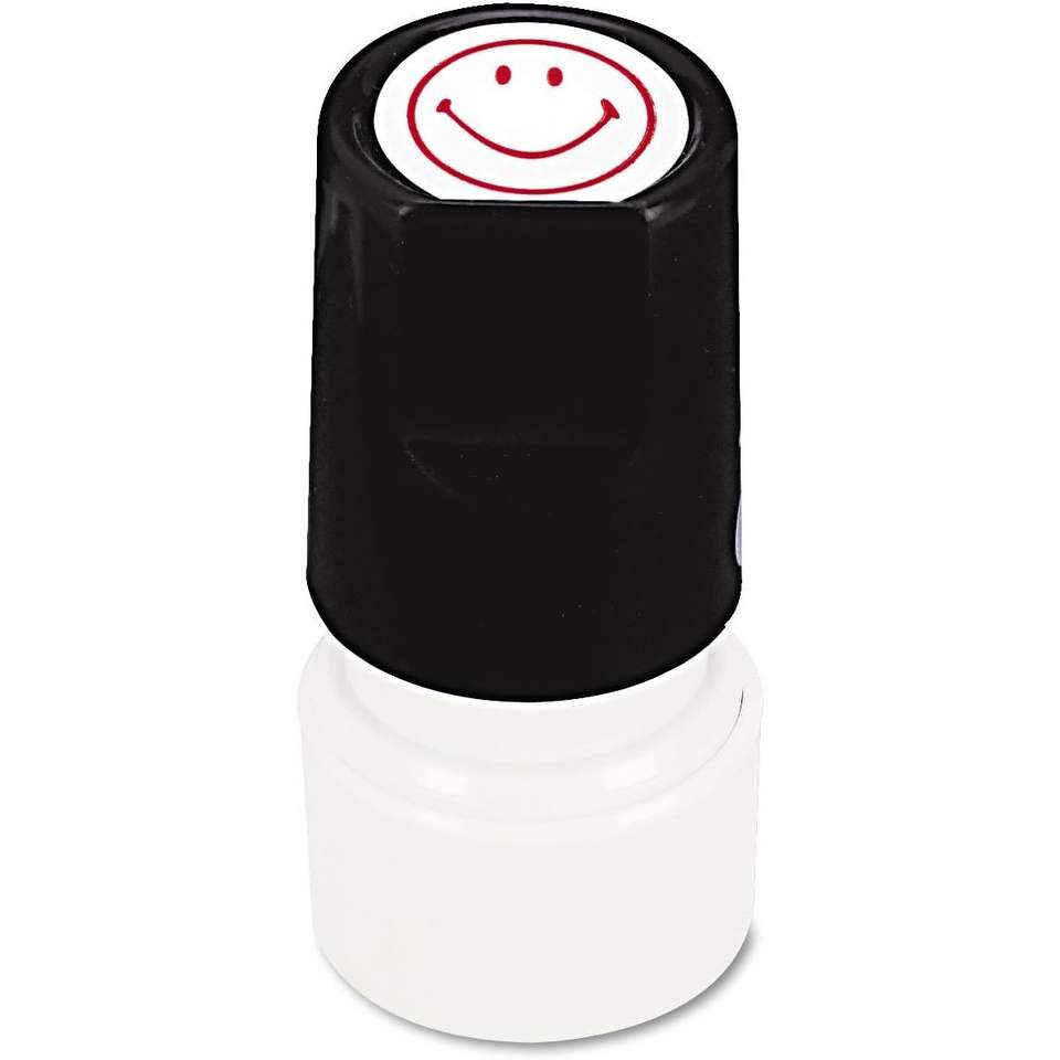 Sello Redondo Universal Autoentintable para Caras Sonrientes, Preentintado/Recargable, Rojo, para Uso en Oficina - Artículo 10080