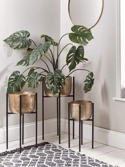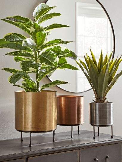 Maceta decorativa redonda y versátil de metal, adecuada para patios, terrazas y verandas, para crear una atractiva exhibición botánica.