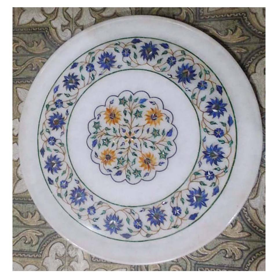 Plato Redondo de Mármol Blanco Incrustado Hecho a Mano