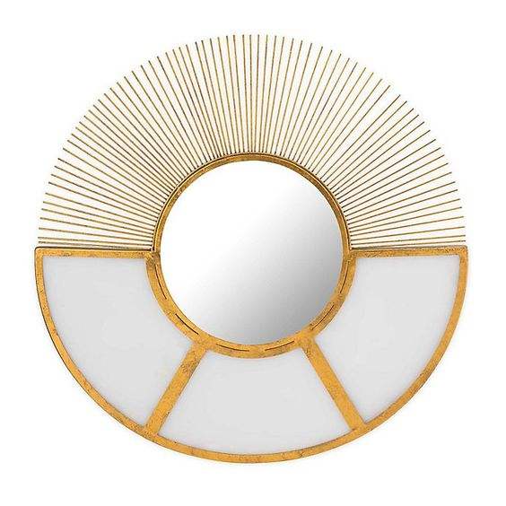 Diseño de alambre redondo Espejo de pared decorativo Forma de sol Acabado dorado Decoración de pared de alta calidad para el hogar Hotel y baño de oficina