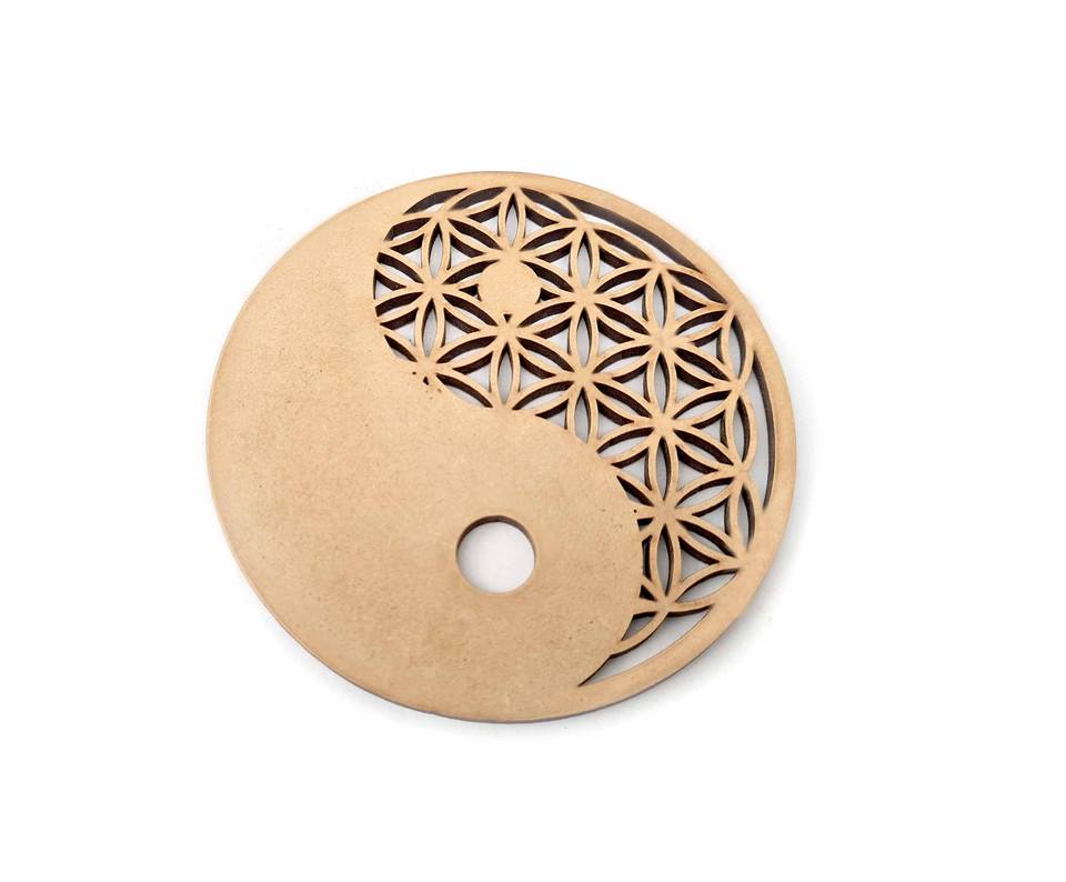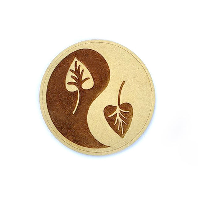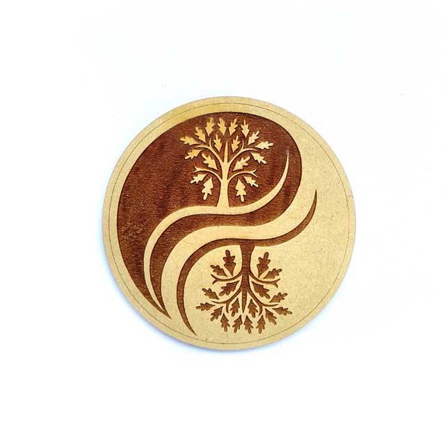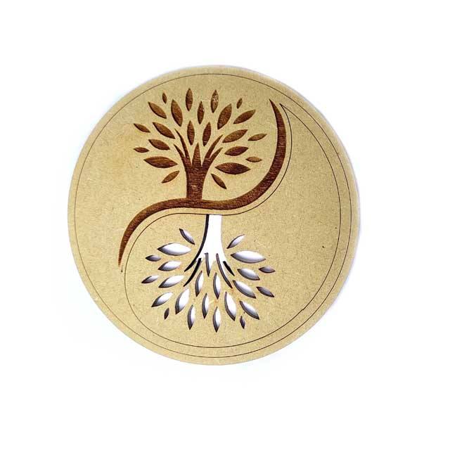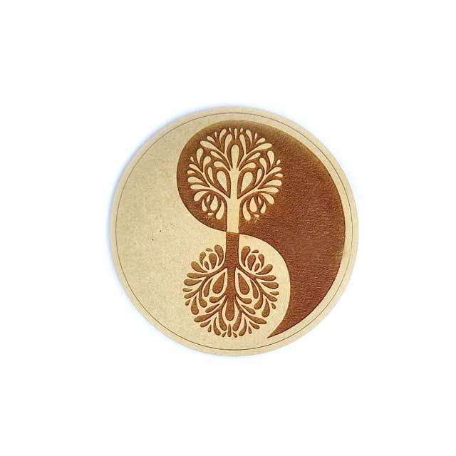 Posavasos redondo de madera MDF grabado láser, 4 pulgadas, con Árbol de la vida, hoja en Ying Yang, estilo simbólico, juegos de posavasos grabados