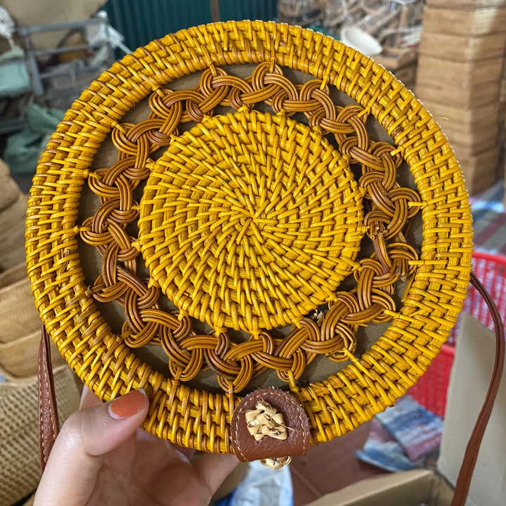Bolso Redondo de Mimbre Tejido a Mano, Bolso Bandolera de Paja para Mujer, para Uso en la Playa en Verano, por 99 Gold Data