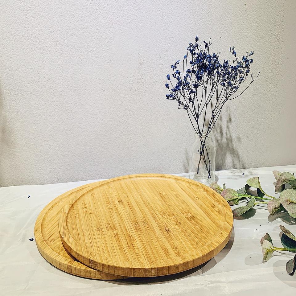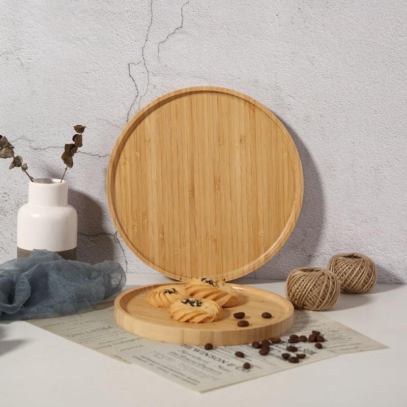 Plato redondo de madera de bambú para Buffet, platos circulares para repostería, excelentes platos para camarero, servicio de comida
