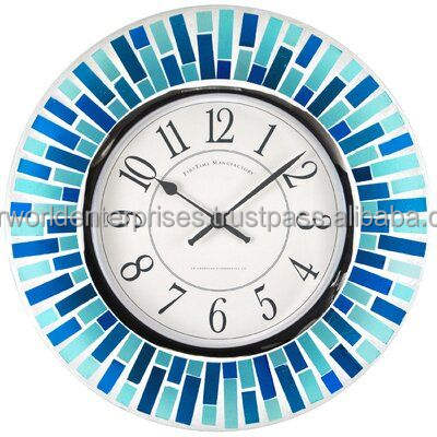 Reloj de pared de Metal con mosaico de vidrio de alta calidad en forma de hierro para la decoración de la pared de cronometraje características Pantalla de aguja de estilo antiguo