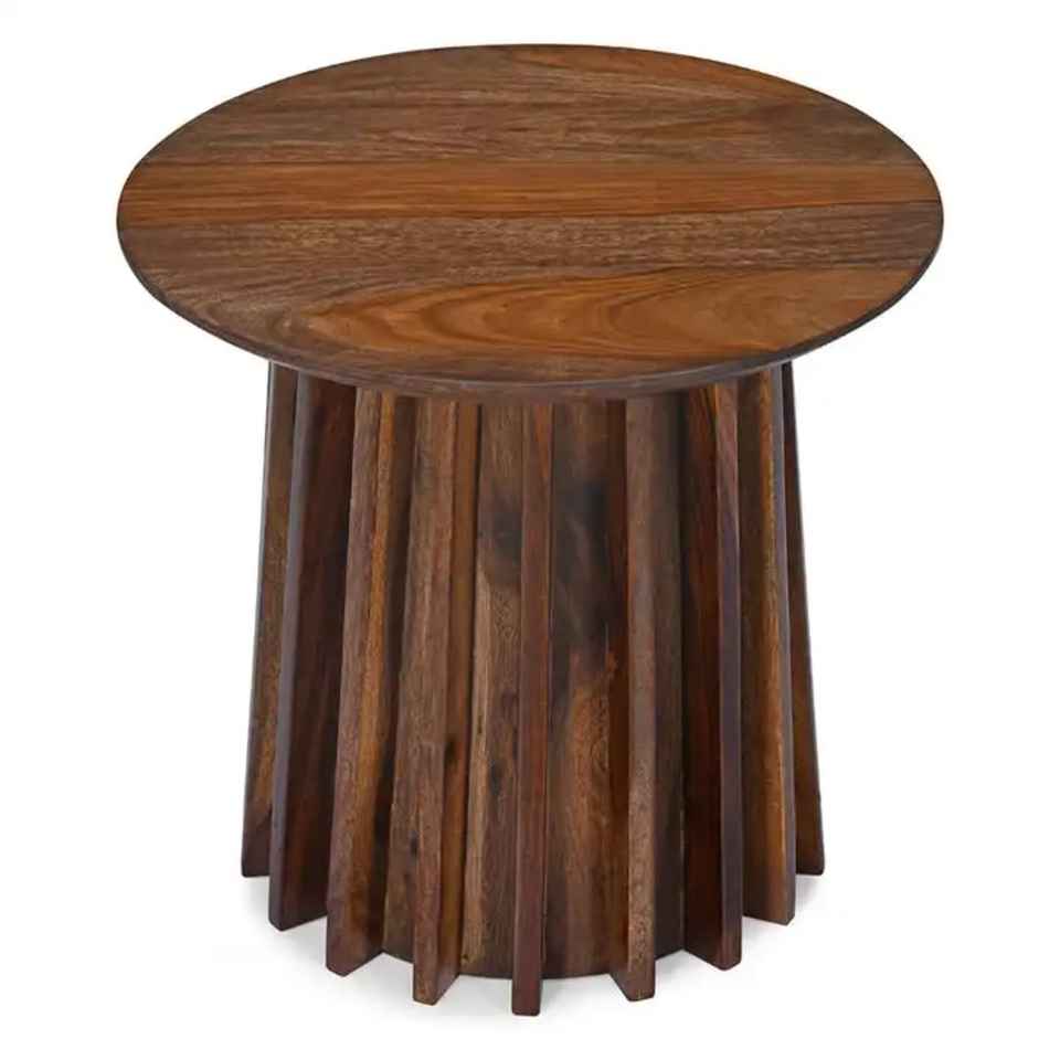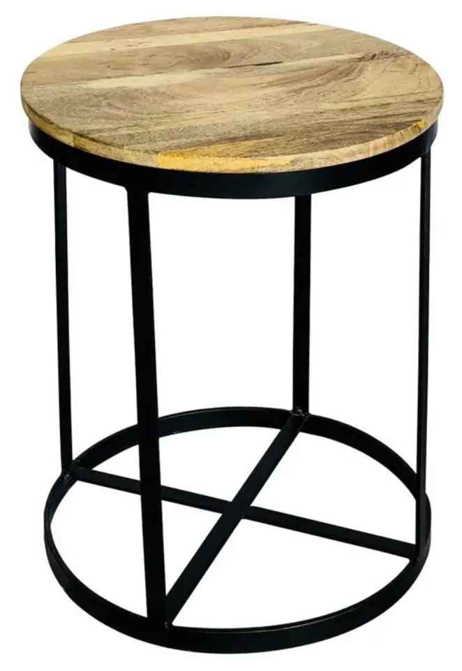 Round light wooden side table with three cylindrical legs natural grain minimalist modern accent furniture for living room