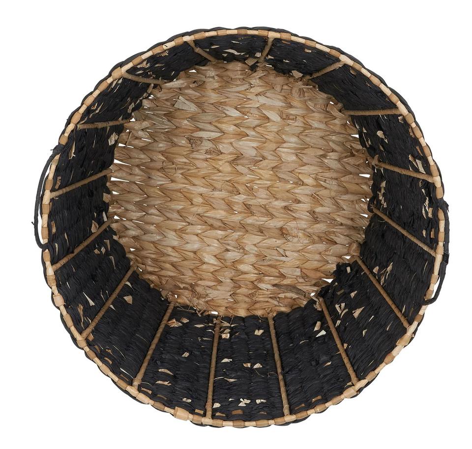 Tamaño: D15 x H15,5 pulgadas:Cesta redonda de jacinto de agua en negro mezclado con colores naturales.