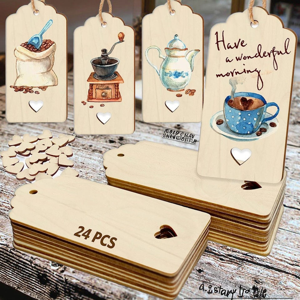 Esquina redondeada Rectangular colgante agujero DIY pintado de madera Navidad marcapáginas decorativos artesanías de madera cajas de madera carteles de pared