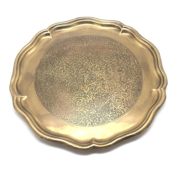 Bandeja de forma redonda con acabado natural para decoración de mesas de hotel, bandeja para servir platos, bandeja para servir alimentos con borde de latón.