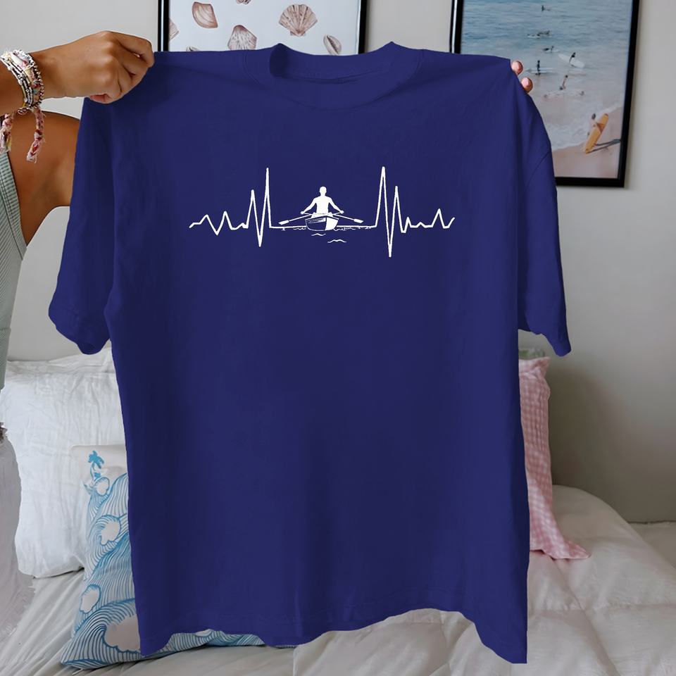 Rowing Heartbeat line Camiseta de algodón puro para mujer ajuste cómodo