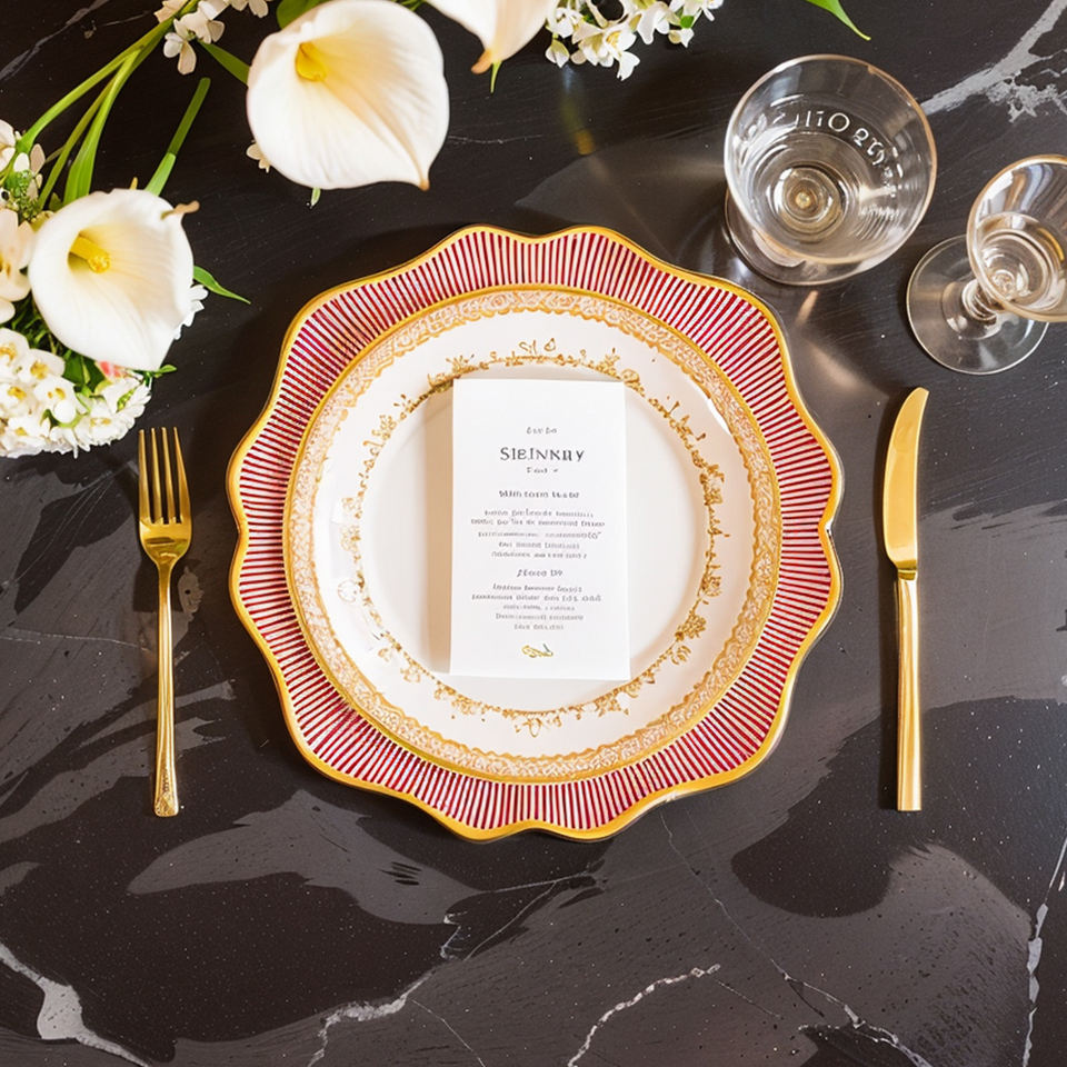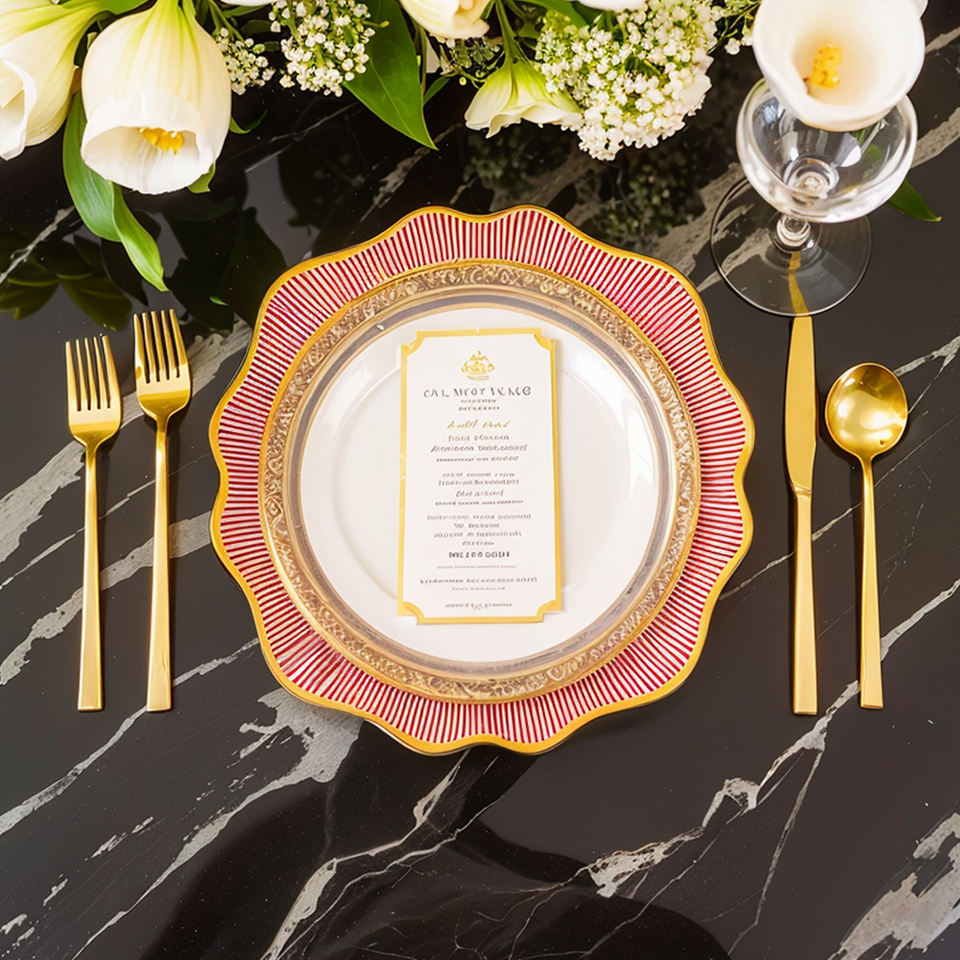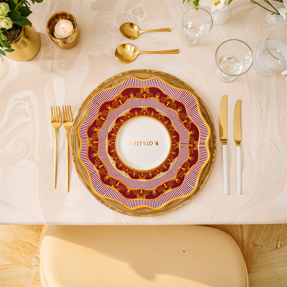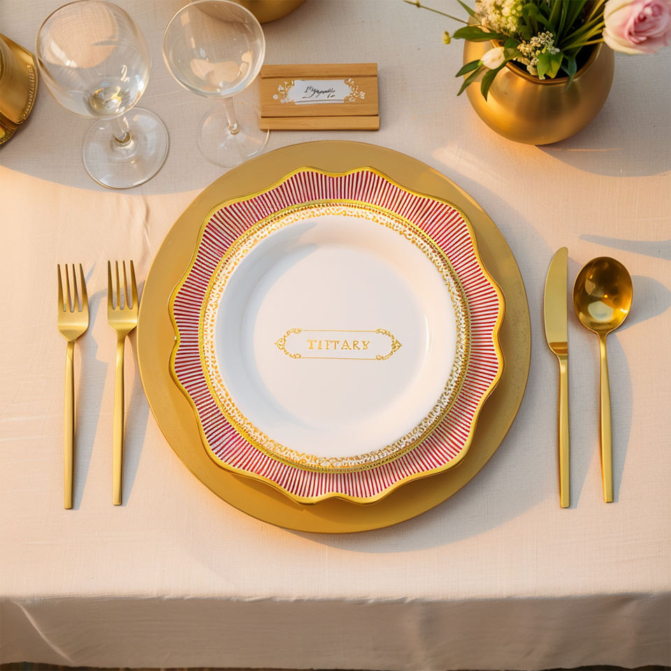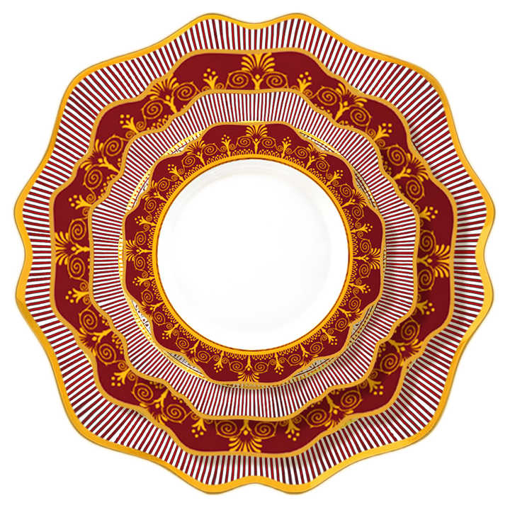 Royal Albert rojo y patrón dorado plato de boda de cerámica hueso mate China plato de banquete colección de vajilla