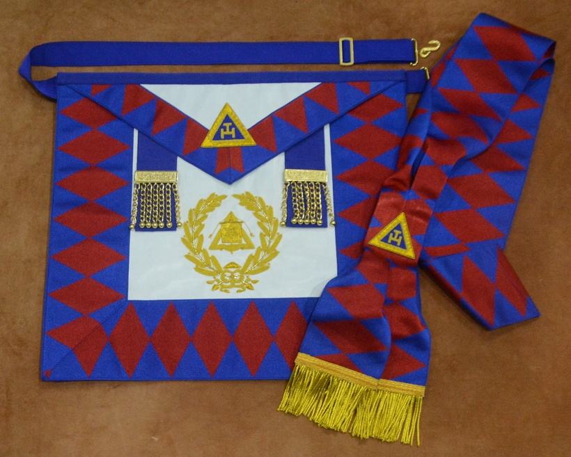 Delantales y faja del Real Arco del Gran Capítulo, delantal de los titulares del Real compañero, banda y pecho, joyas, Collar, guantes y corbatas
