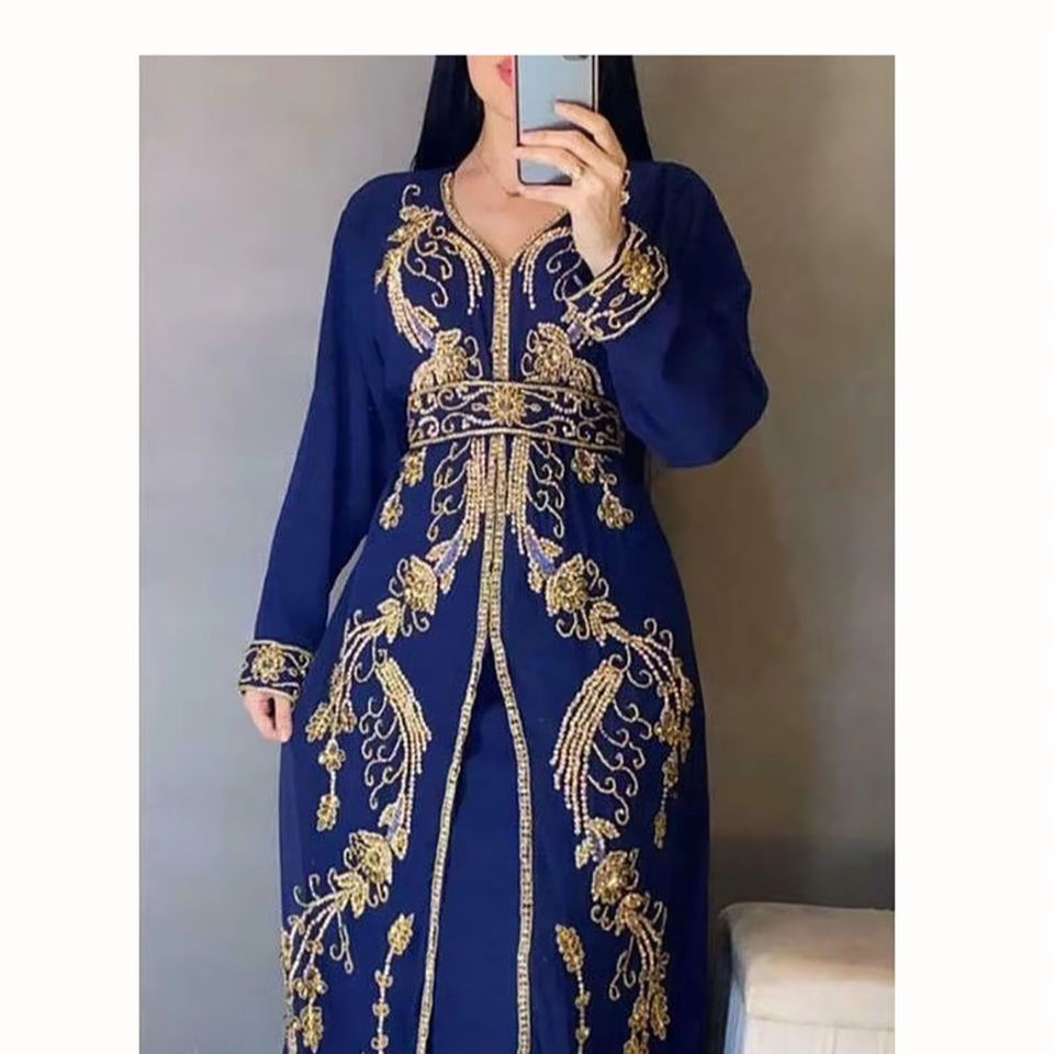 Royal Blue Georgette Stone y Zari Work Kaftan
