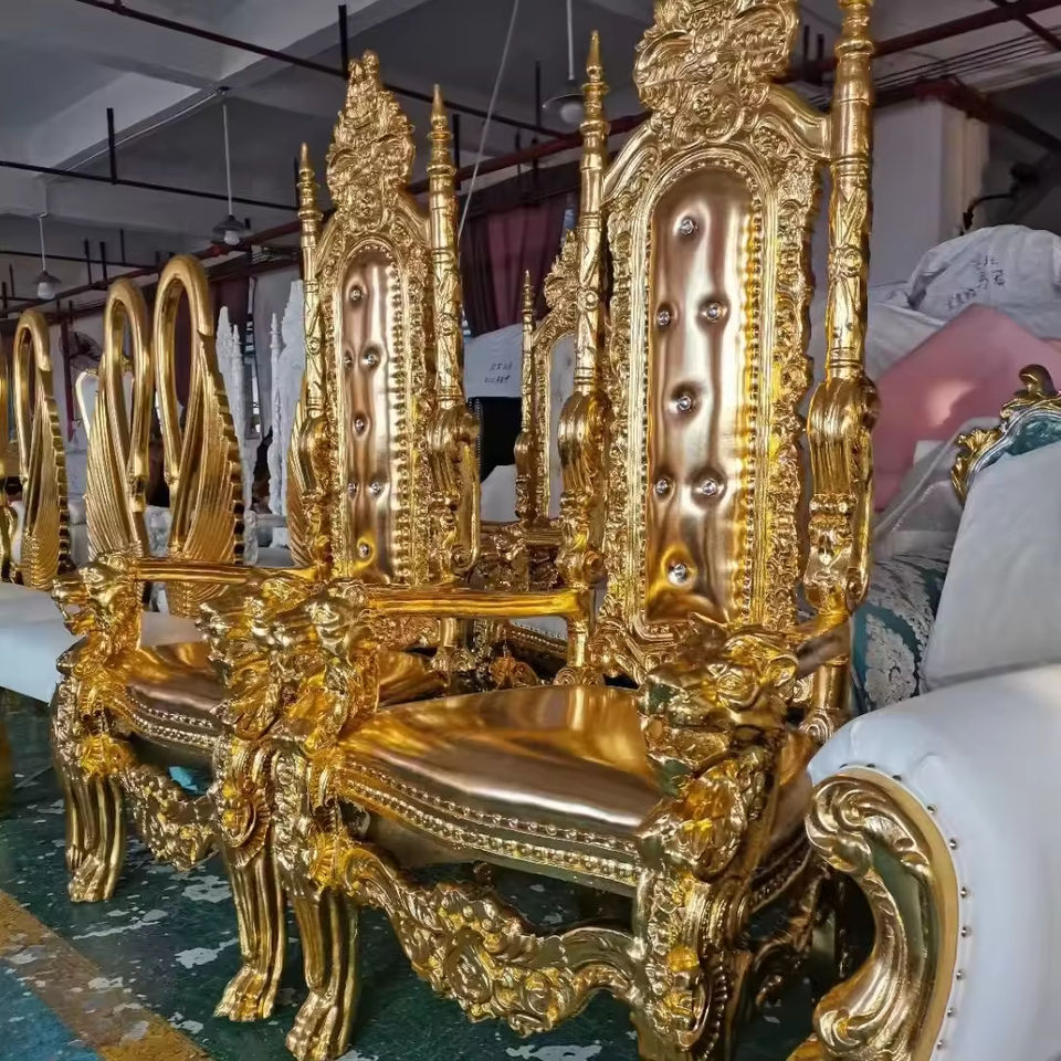 Alquiler de sillas trono de rey y reina de respaldo alto económicas para fiestas de bodas clásicas reales