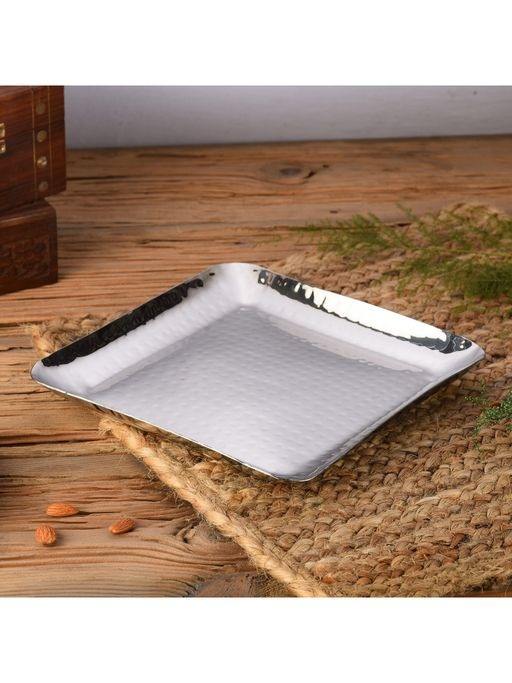 Bandeja de servicio de acero de Metal Rectangular de diseño real con asas de mármol de ágata para Diwali y decoración de mesa de cumpleaños Faizacraft