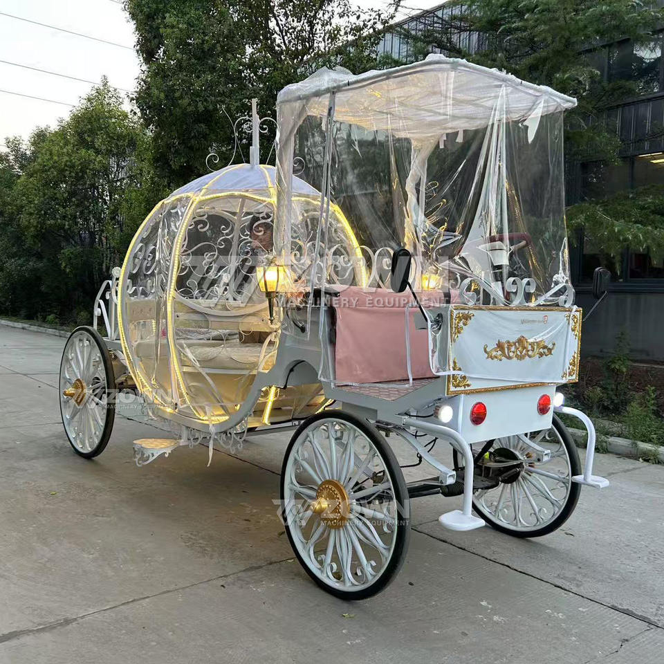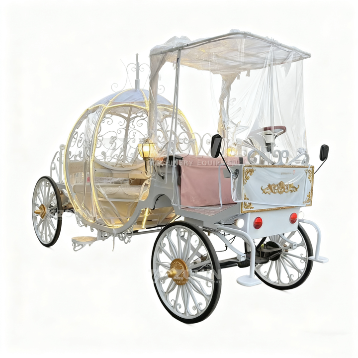 Royal Electric Horse Carriage Wedding Sightseeing Cart 4 Ruedas 4-6 Personas Capacidad Cortina de lluvia