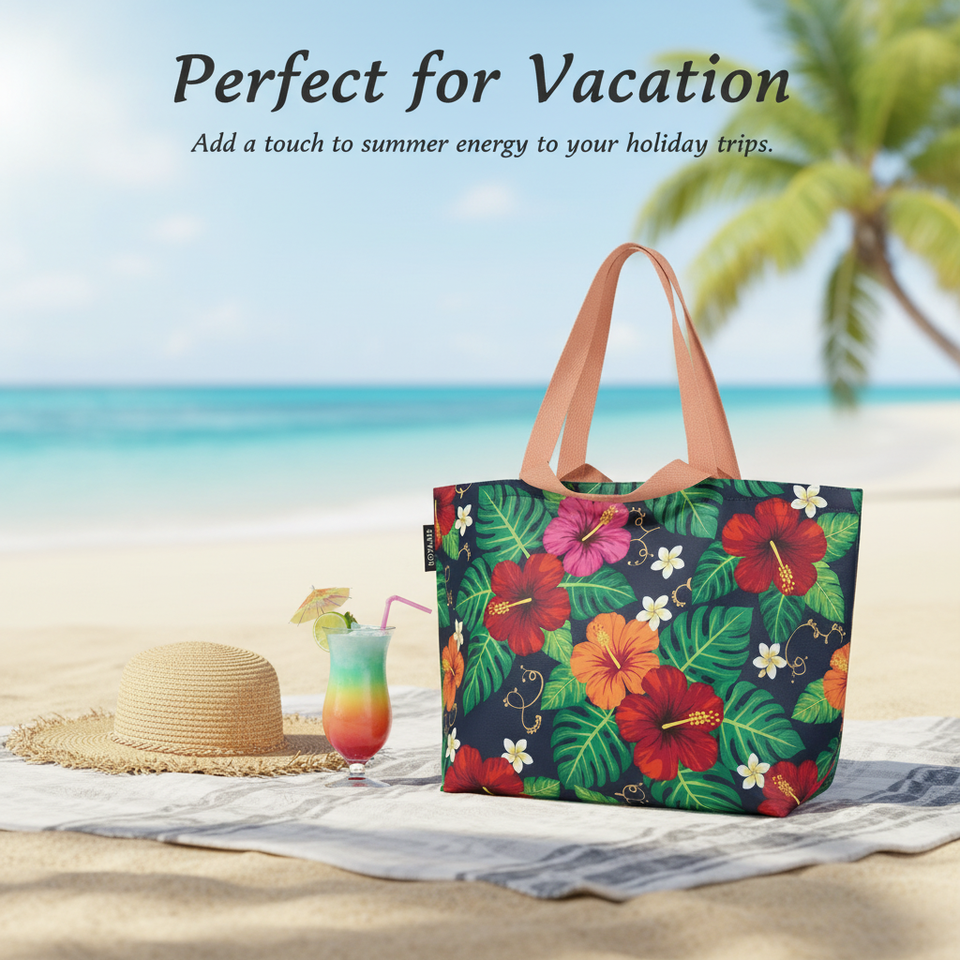 Bolsa de Mano de Lona con Estampado Tropical de Hibisco, Personalizada por Royal Fair, para la Playa, Compras, o como Bolsa de Hombro
