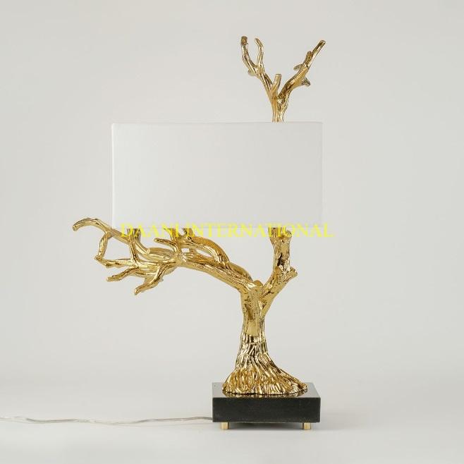 Lámpara de mesa de Árbol de Oro real con pantalla blanca Rectangular iluminación decorativa de lujo para hoteles dormitorio decoración de oficina lámparas de escritorio