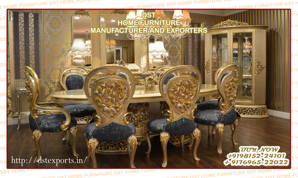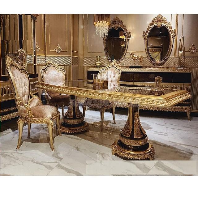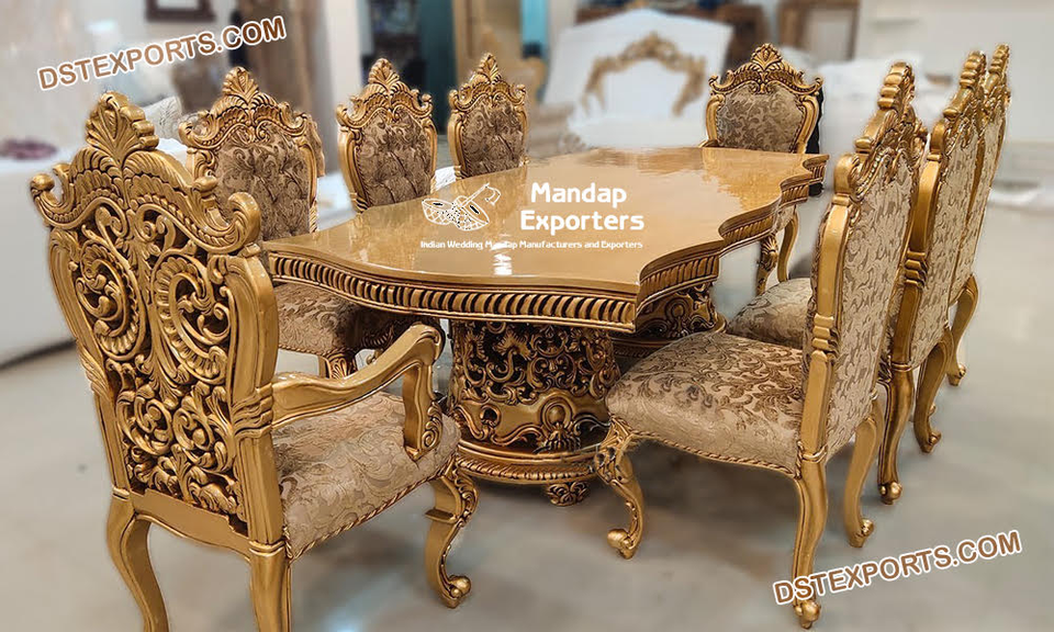Royal Hand Carved Gold Finish Dining Table SetProduct name