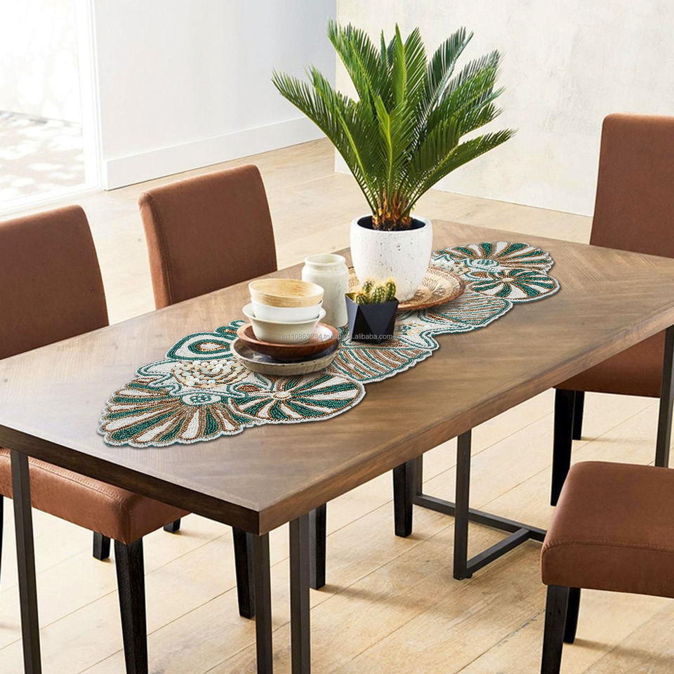 Camino de mesa con cuentas hecho a mano de aspecto real, mesa de restaurante de Hotel, corredor con cuentas decorativo y artículo de uso dotado