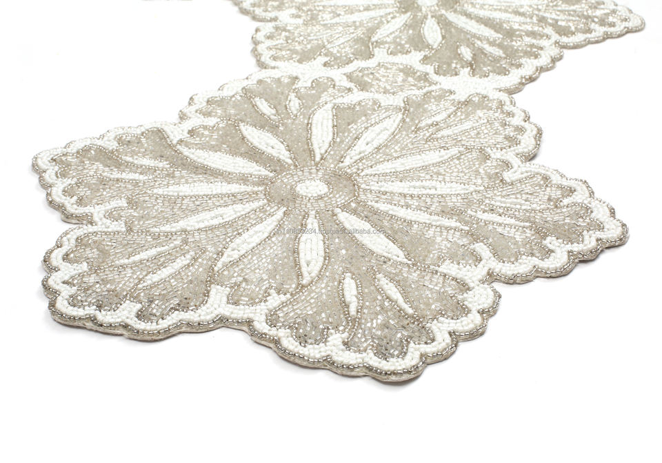 Camino de mesa con cuentas hecho a mano de aspecto real, mesa de restaurante de Hotel, corredor con cuentas decorativo y artículo de uso dotado